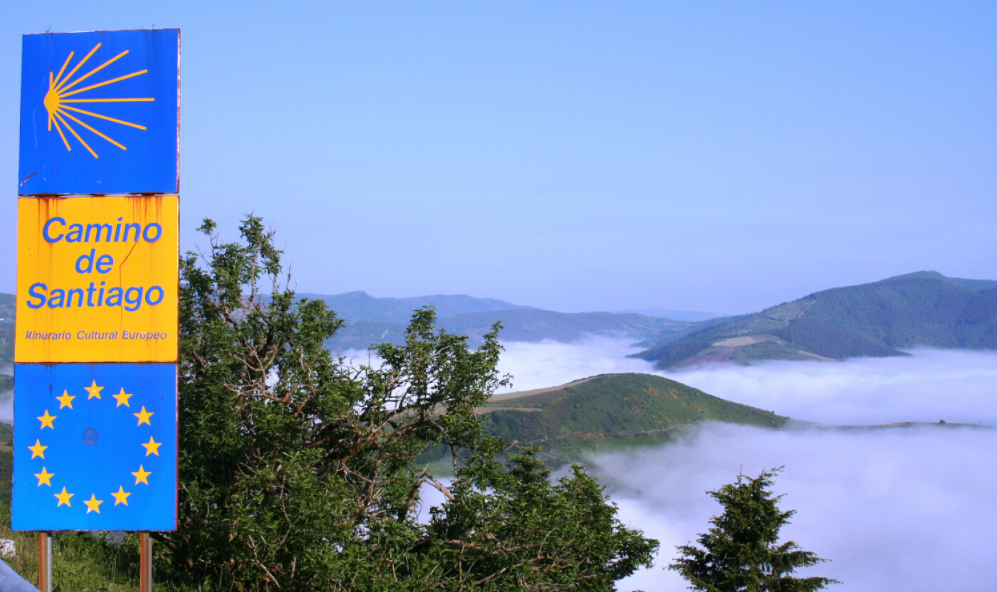 Señalización del Camino de Santiago, en O Cebreiro