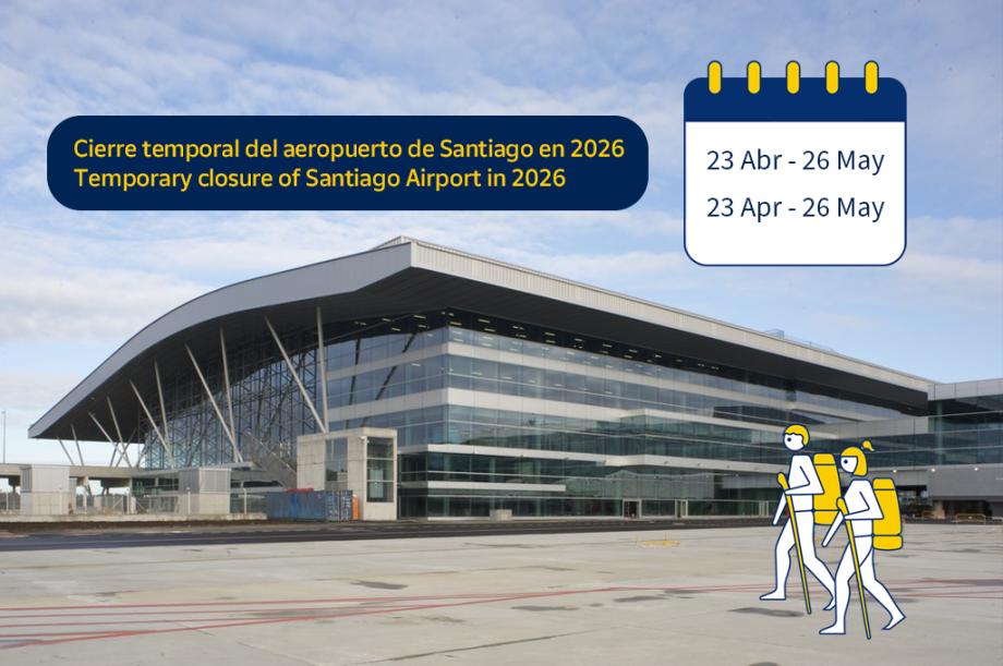 ¿Estás planeando hacer el Camino de Santiago en los meses de abril o mayo de 2026? Volar a Santiago o regresar a casa desde aquí se complica. Del 23 de abril al 26 de mayo, el aeropuerto Rosalía de Castro de Santiago de Compostela (SCQ) permanecerá cerrado.