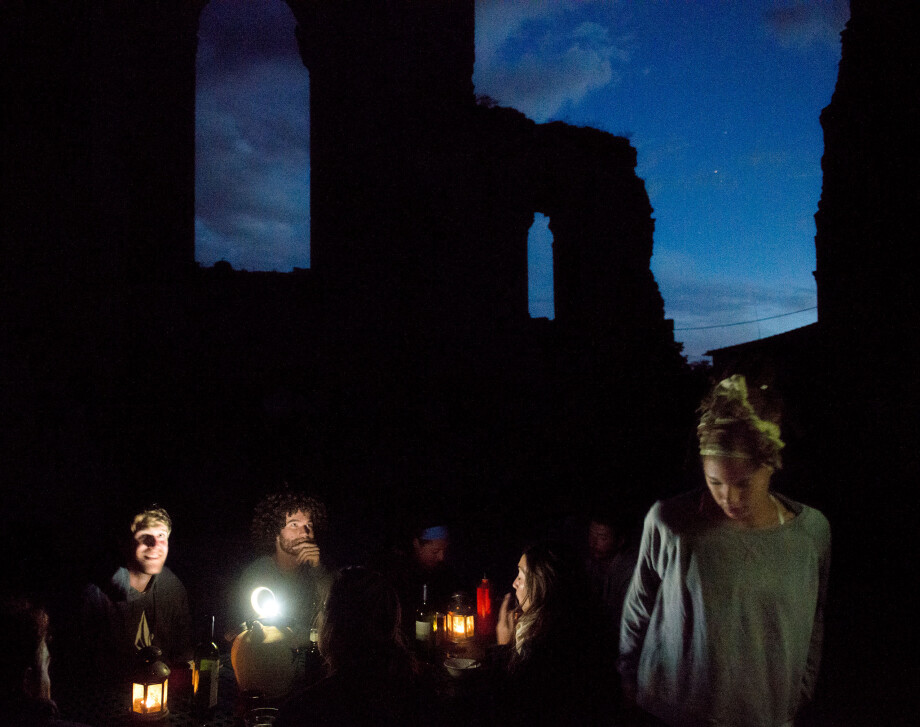Peregrinos pasando la noche en las ruinas del Monasterio de San Antón. Foto: Manuel G. Vicente